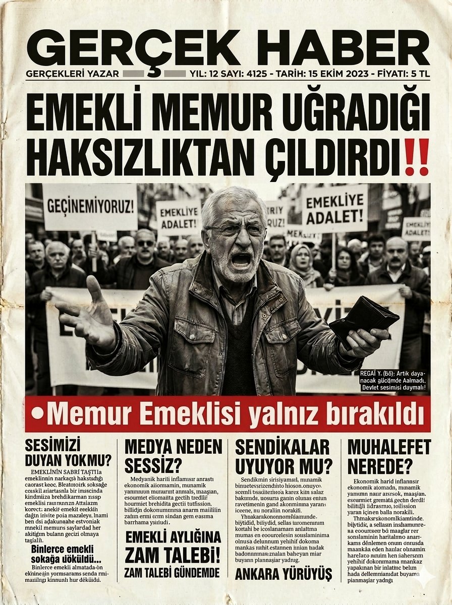 MEMUR EMEKLİLERİNDEN SERT TEPKİ: “HAKKIMIZI VERİN, SADAKA DEĞİL ADALET İSTİYORUZ” Türkiye’de yaklaşık 2,5 milyon memur emeklisi, 2023 yılı Temmuz ayında memurlara verilen seyyanen ilave ödemenin emekl...